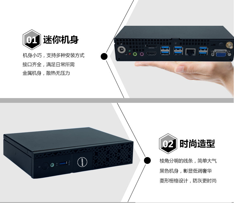 目光所及,皆是不同,從上圖前臉面板我們可以清楚的看見一個(gè)開機(jī)按鍵,一個(gè)3.5的單孔耳機(jī)接口和USB3.0或者HDMI接口可選,從前臉面板我們也可以看見中國(guó)結(jié)一樣的散熱孔,可以更好的保護(hù)電腦,從背面可以看見6個(gè)USB接口(4個(gè)USB3.0,2個(gè)USB3.0)和3.5的音頻接口,網(wǎng)絡(luò)接口,VGA接口,DP和HMDI口等豐富I/O接口,可滿足數(shù)據(jù)轉(zhuǎn)換、網(wǎng)絡(luò)傳輸、USB設(shè)備操作、4K視頻輸出、電竟游戲等多項(xiàng)需求;支持HDMI、VGA、DP三顯輸方式,,愛(ài)鑫微商用電腦主機(jī)支持Core i3/i5/i7處理器,內(nèi)置2個(gè)Mini-PCIe,可支持3G/4G/Wi-Fi模塊擴(kuò)展;同時(shí)支持MSATA/M.2的儲(chǔ)存方式,支持RJ45網(wǎng)絡(luò)口,這類商用主機(jī)已經(jīng)在市面上流通銷售了,內(nèi)部集成CPU和顯卡。愛(ài)鑫微商用電腦主機(jī)更可貴之處是在小小的機(jī)身內(nèi)可以支持各種類型的獨(dú)立顯卡(GTX730/GT1030/GTX1050/GTX1050TI/GTX1060 2-6G顯存),目前愛(ài)鑫微針對(duì)商用主機(jī)市場(chǎng)推出了兩大系列產(chǎn)品Q系列商用主機(jī)與X系列商用主機(jī),尺寸分別為:180mm (L) x 130mm (W)x38mm(H)與180mm (L) x 206mm (W) x 38mm (H),這類型電腦放置也是多樣性的,我們可以隨意的把這微型電腦主機(jī)放在合適的位置進(jìn)行與顯示器連接,這樣就解決了線很凌亂的難題了,我們?cè)倏纯催@微型電腦主機(jī)的大小與成年人手大小對(duì)比圖!