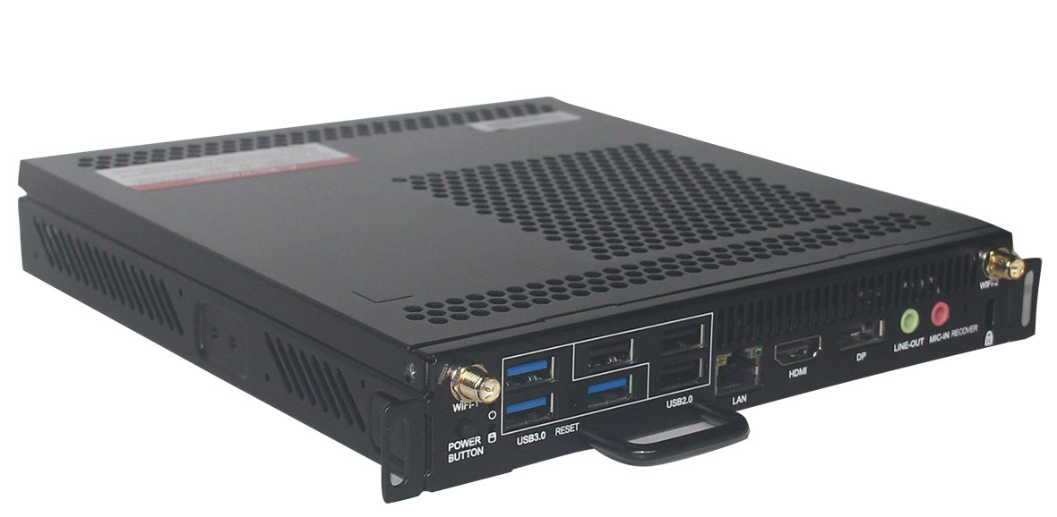 | 4K/5K/8K顯示OPS插拔式電腦(支持102寸一體機) Tigerlake-U I5-1135G7/I7-1165G7 支持6組USB(3組USB3.0 /3組USB2.0) 支持千兆網口、支持TYPE-C、支持HDMI IN 支持1xHDMI 2.0+ 1xDP1.4異步顯示 支持4K/5K/8K(3840*2160、5120*2880、7680*4320) 支持網絡喚醒、EUP節能、上電開機、看門狗等 產品符合CE FCC ROHS規范 尺寸:180MM*195MM*30MM |