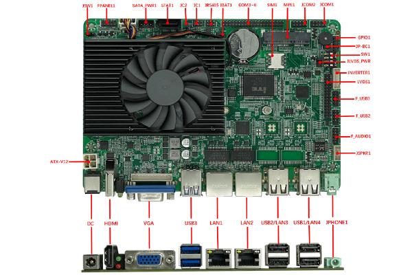 6 COM RS-232,8 USB, 8-bit GPIO, WIFI, SSD