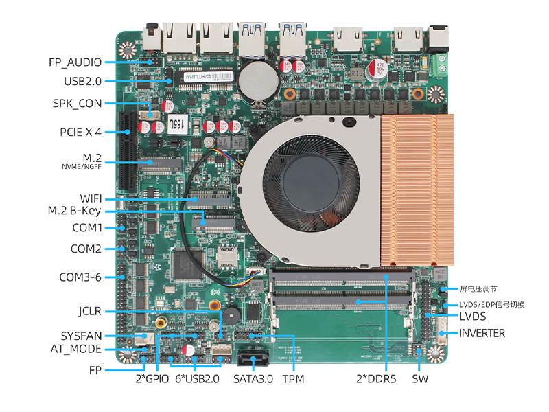 | MINI-ITX工業主板 支持Meteor Lake-u 14th Ultra 3/5/7CPU 支持Ultra5 135H/135U/Ultra7 155H/Ultra 9 185H 支持雙千兆網口、異步3顯(2*HDMI/VGA+LVDS/edp) 支持雙通道DDR5內存 最大支持96G 支持1*SATA3.0、1*M.2接口 支持6*RS232、4*USB3.0、8*USB2.0 支持網絡喚醒、上電開機、看門狗等 產品符合CE FCC ROHS規范 |